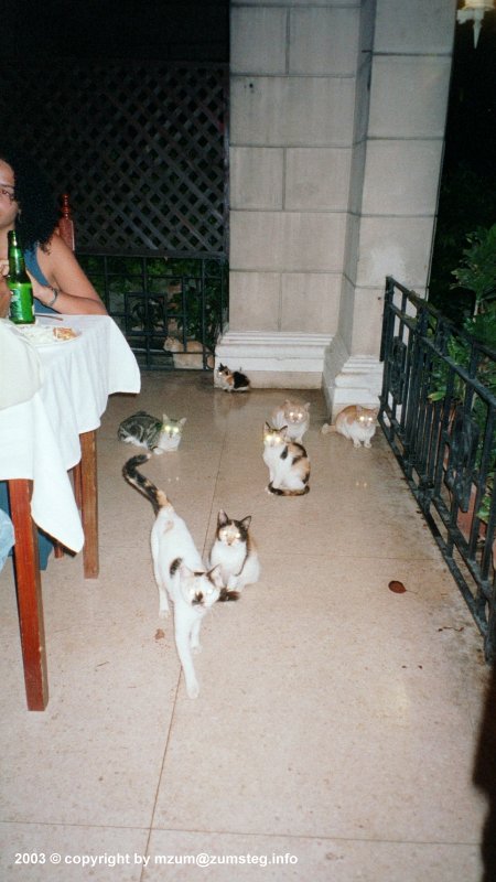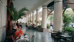 Gemütliches Café im alten Hotel Inglaterra am Parque Central (nähe Capitolio Nacional und neben dem lautem Grand Teatro de La Habana), wo alle Touristenjäger auf die Gäste aus Übersee warten und sich nicht mal mehr durch die "zwei Millionen" "Policía nacional de la revolución" von ihrer Beute beirren lassen. Zwischen La Rampa und dem Hotel Habana Libre sowie am Malecon selbst, muss die "Un dollar por favor!", die "Where do you come from?" oder sogar die "Hello my friend!" fast prügeln damit man Ruhe hat...