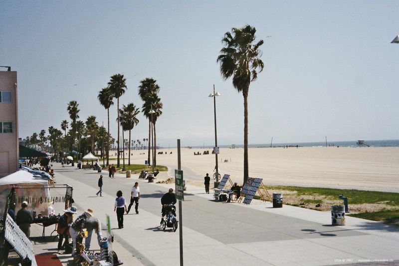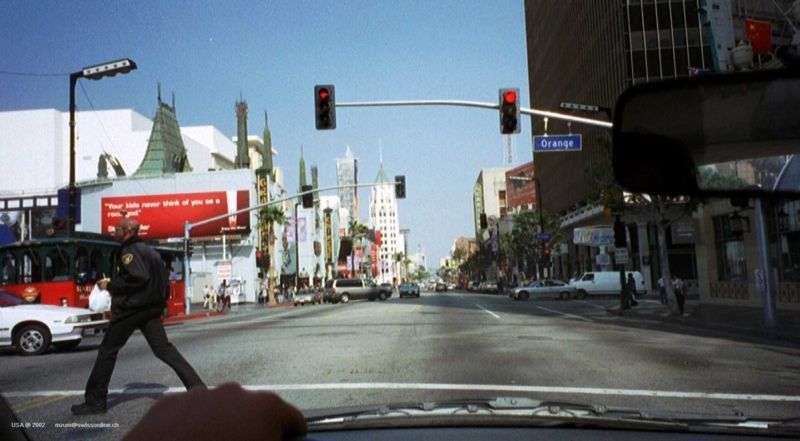 Der ruhige Hollywood Boulevard... Jede Menge Stars auf dem Walk of Fame... Die Abdrücke von den Stars im alten Chinesischen Theater, Hollywood... Sicht (durch den Smog) auf Downtown LA von den Hollywood Hills, ...d.h. von einem Aussichtspunkt für Touristen, ...von wo man auch gegenüber die berühmten Schriftzeichen erkennen kann... Und rechts davon der Grossraum L.A... Downtown Bevery Hills by night... Wenn's kalt ist, ist am Venice Beach ruhig...