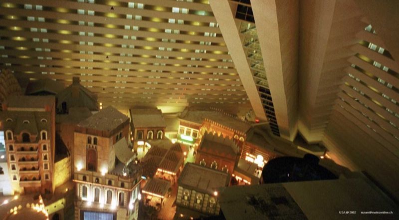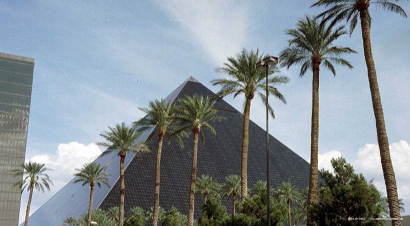The Las Vegas 'Strip', an der I-15 in Nevada... Die Amis bauen alles nach, wo ist das Matterhorn ? Casino 'New York New York', mit Roller Coaster... Die Pyramide vom Casino Luxor... Im Innern der Pyramide mit dem 'schrägen Lift'... Im Casino schauen sie allen auf die Finger, da wird nicht betrogen...